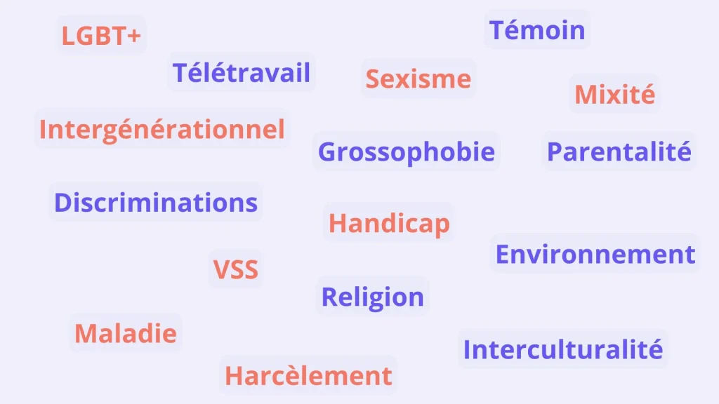 En agissant sur le processus de recrutement, la formation à la diversité et le management inclusif, nous permettons aux entreprises de favoriser l’engagement de chaque collaborateur tout en luttant activement contre les discriminations et le harcèlement.